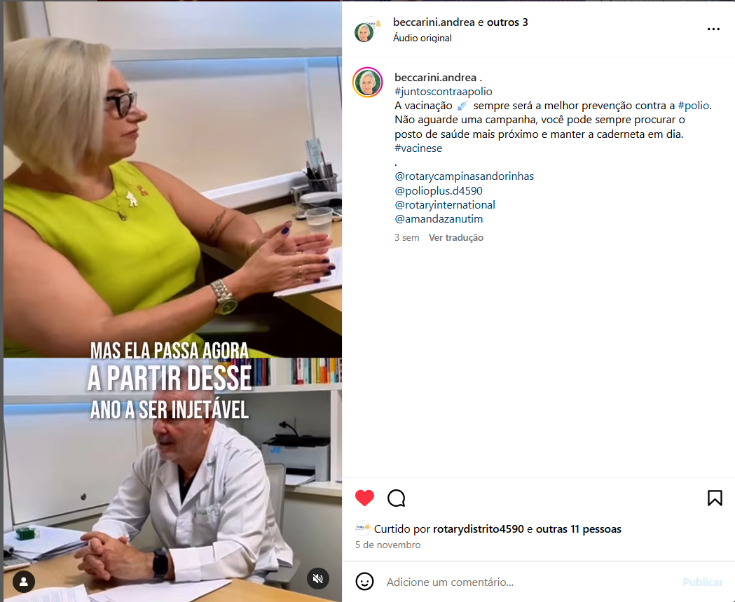 Um série de 5 videos publicados nas redes sociais com atualização sobre a vacinação contra a Polio (Injetável) através de uma entrevista conduzida pela companheira Andrea Beccarini ao Dr Alfredo Lopes.
